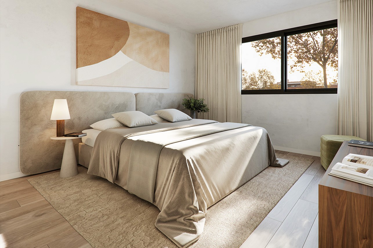 Espacios diseñados para disfrutar de amplitud, luz natural y confort. Viviendas con salones abiertos integrados con la cocina, terrazas privadas, zonas de descanso perfectamente diferenciadas y una cuidada orientación que aprovecha al máximo la luz y la eficiencia energética.